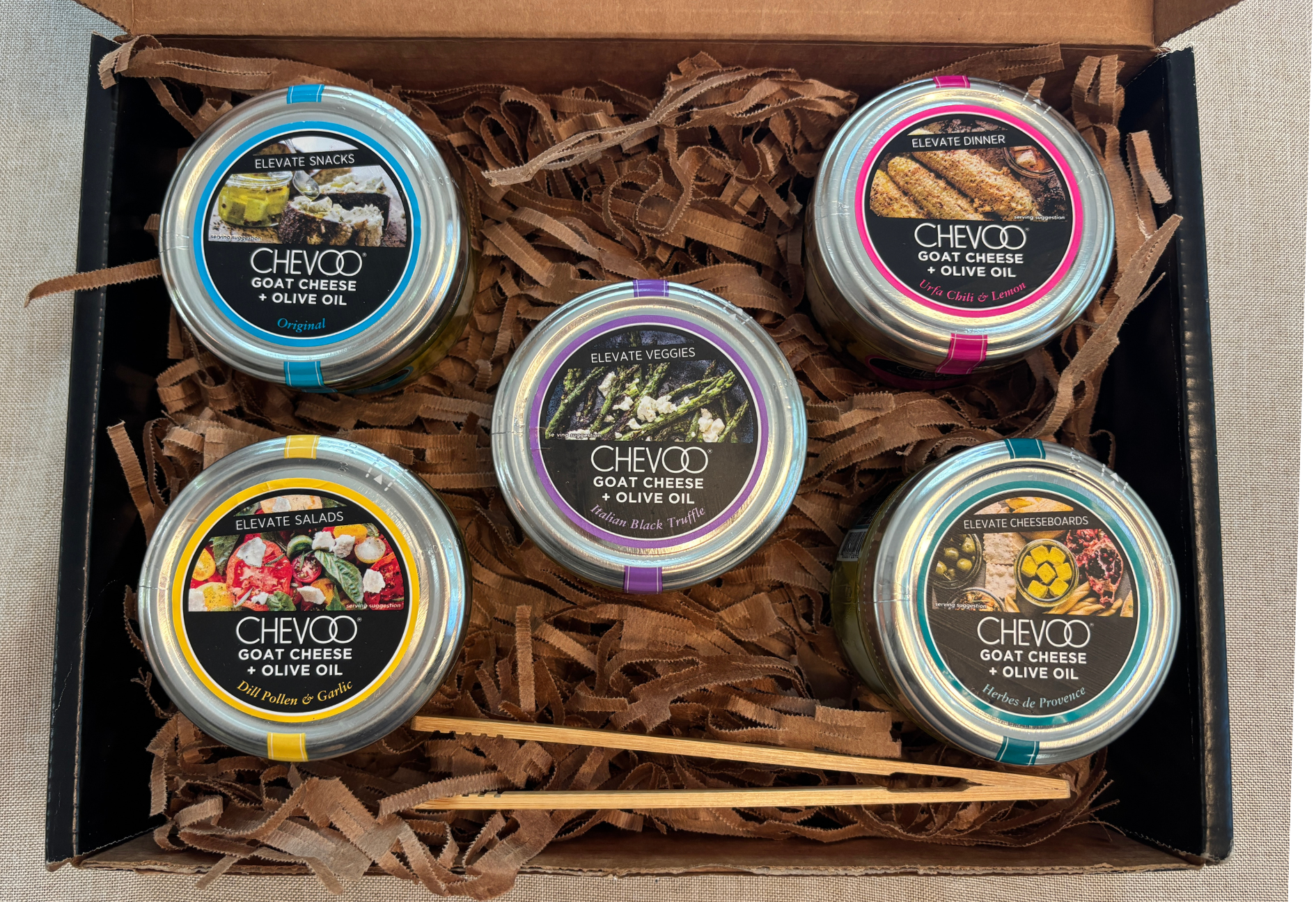 CHEVOO is a magical combination of herb-blended, cubed fresh goat cheese, then marinated in a robust extra virgin olive oil infusion. With tantalizing flavors such as Herbes de Provence and Urfa Chili & Lemon, your palate will come alive!
